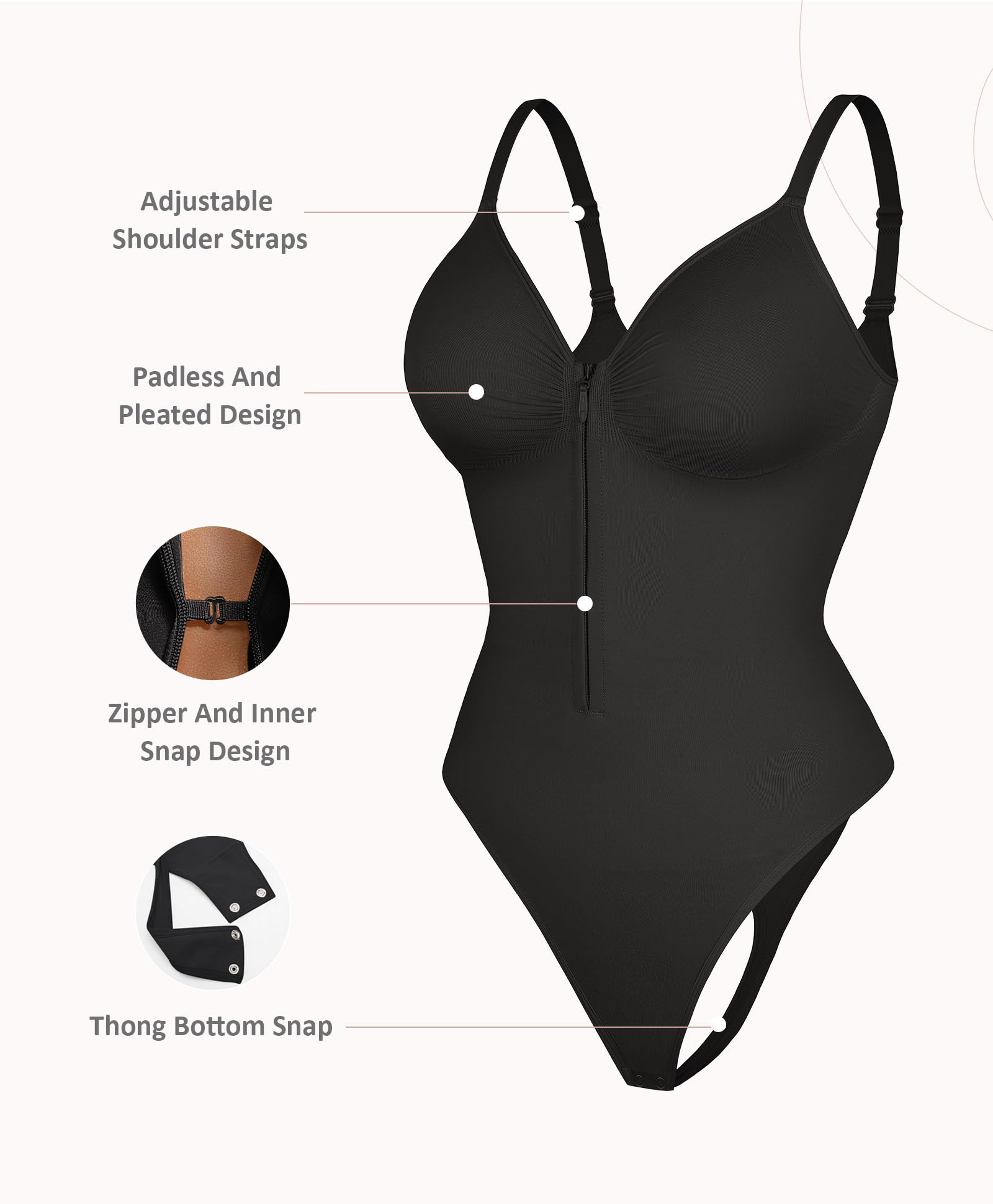 Tummy Control Zip-Up V Neck Bodysuit